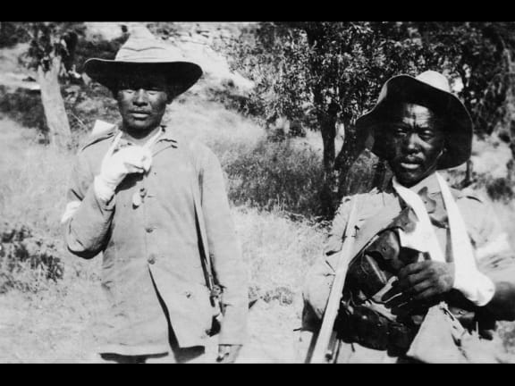 Two wounded Indian soldiers [Gurkhas], Gallipoli, Turkey. Photographed by an unknown photographer in 1915. Denniston, George Gordon, 1885-1958 :Photograph albums relating to World War I including the Gallipoli campaign. Ref: PA1-o-863-01-4. Alexander Turnbull Library, Wellington, New Zealand. http://natlib.govt.nz/records/22864426.