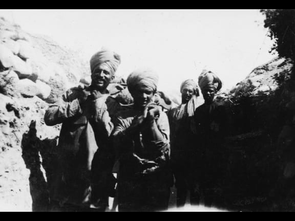 Turbaned Indian soldiers, Gallipoli, Turkey. Photographed by an unknown photographer in 1915. Denniston, George Gordon, 1885-1958 :Photograph albums relating to World War I including the Gallipoli campaign. Ref: PA1-o-863-01-2. Alexander Turnbull Library, Wellington, New Zealand. http://natlib.govt.nz/records/22914492