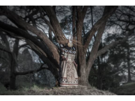 Lisa Reihana. 'Tai Whetuki/House of Death': Image: Lisa Reihana 2014. Photo: Kallan MacLeod. Costume: Bob Buck, Lisa Reihana. Talent: Hemi David.