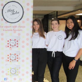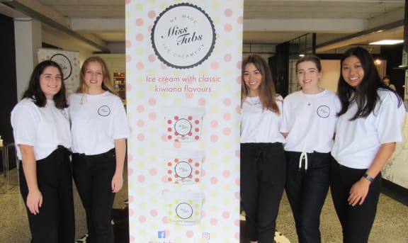 Six students, five from Westlake Girls High and one from Westlake Boys, have been making ice-cream in tubs for the past couple of years, after setting up a business as part of an extra-curricular project. It's called Miss Tubs and its CEO is Caitlin Goodin, marketing manager is Charlotte Houten and communications manager is Eda Ye. They join Wallace to talk about their business.