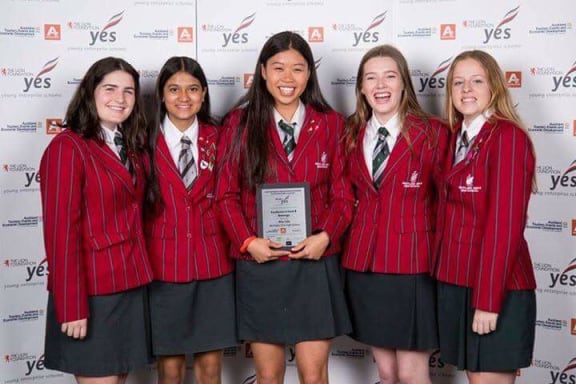 Caitlin Goodin, Lillie Cripps, Eda Ye, Victoria Roebuck and Charlotte Houten won the Excellence in Food and Beverage award at the Lion Foundation Young Enterprise regional awards.